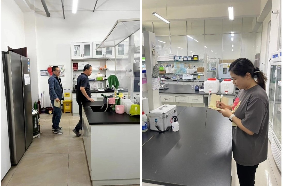 5月26日下午副经理李东明带队深入实验室开展全院安全大检查。对照教育部实验室安全检查目录,重点检查实验室化学试剂及危化品管理、实验废弃物处置、实验仪器标识张贴、消防设施等方面,对发现的问题记录在册,发现问题立整立改。